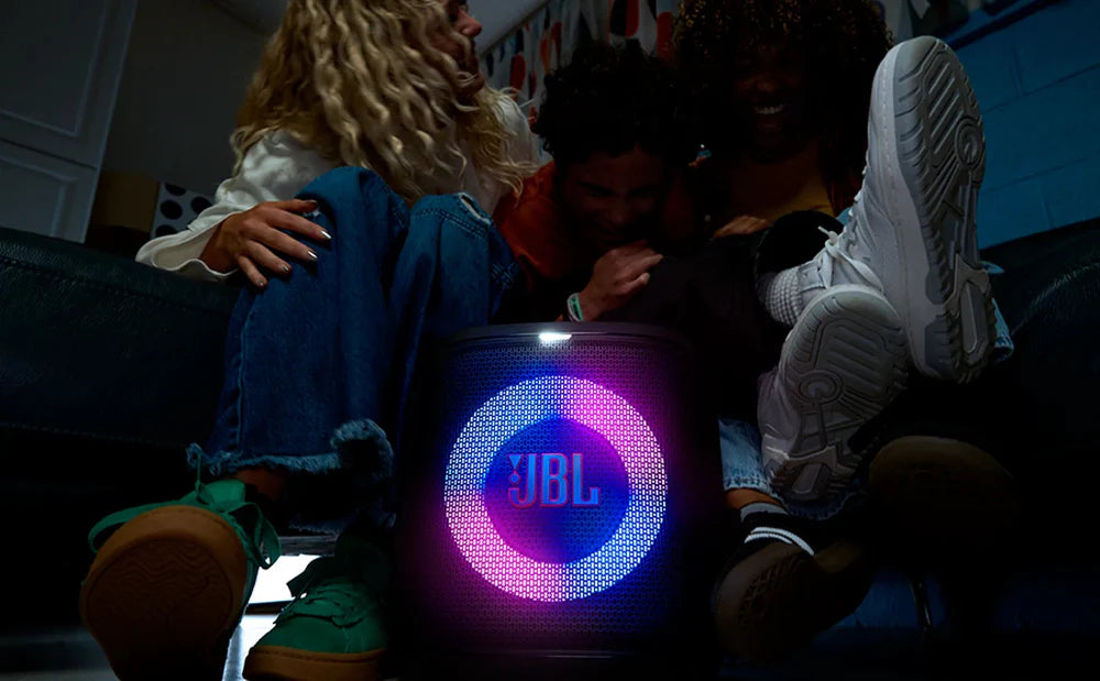 - Controla la fiesta desde la aplicación JBL PartyBox: No te sientas atrapado por tener que estar monitorizando constantemente los altavoces. Controla la música, los ajustes de ecualización y el espectáculo de luces desde la aplicación JBL PartyBox, dondequiera que te lleve la fiesta.